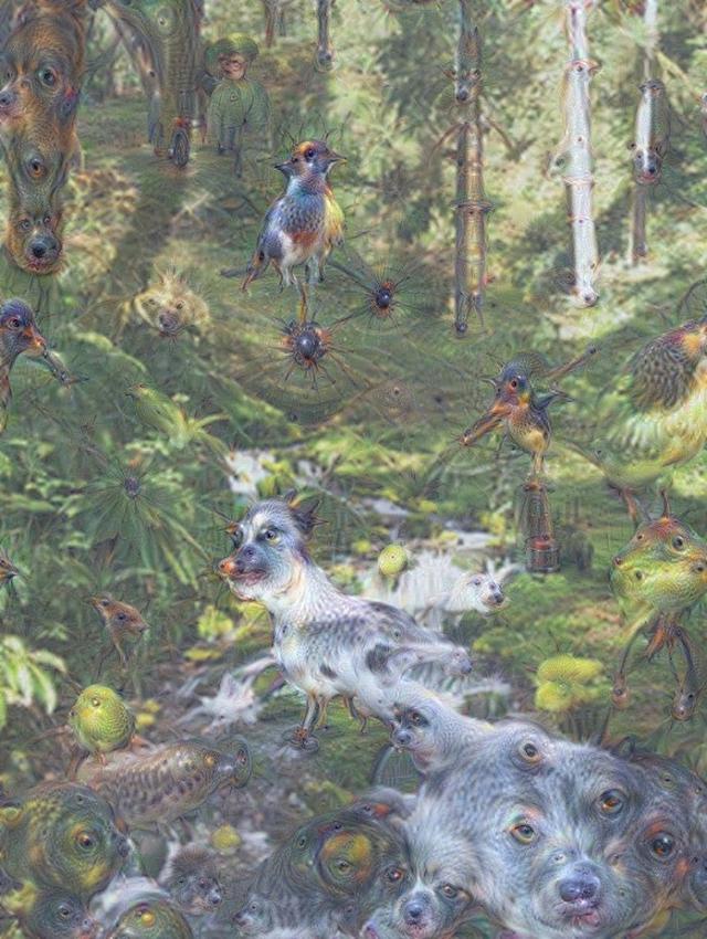 Группа исследователей рассказала, как можно заставить нейронные сети, умеющие определять, что изображено на картинке или фотографии, самих начать писать картины. Если коротко, достаточно дать им какое-то изображение или даже случайный шум и приказать: «Найди тут что-нибудь знакомое и выдели это поярче». Проделав операцию несколько раз (в процессе меняя масштаб), можно получить удивительные и красивые картины.