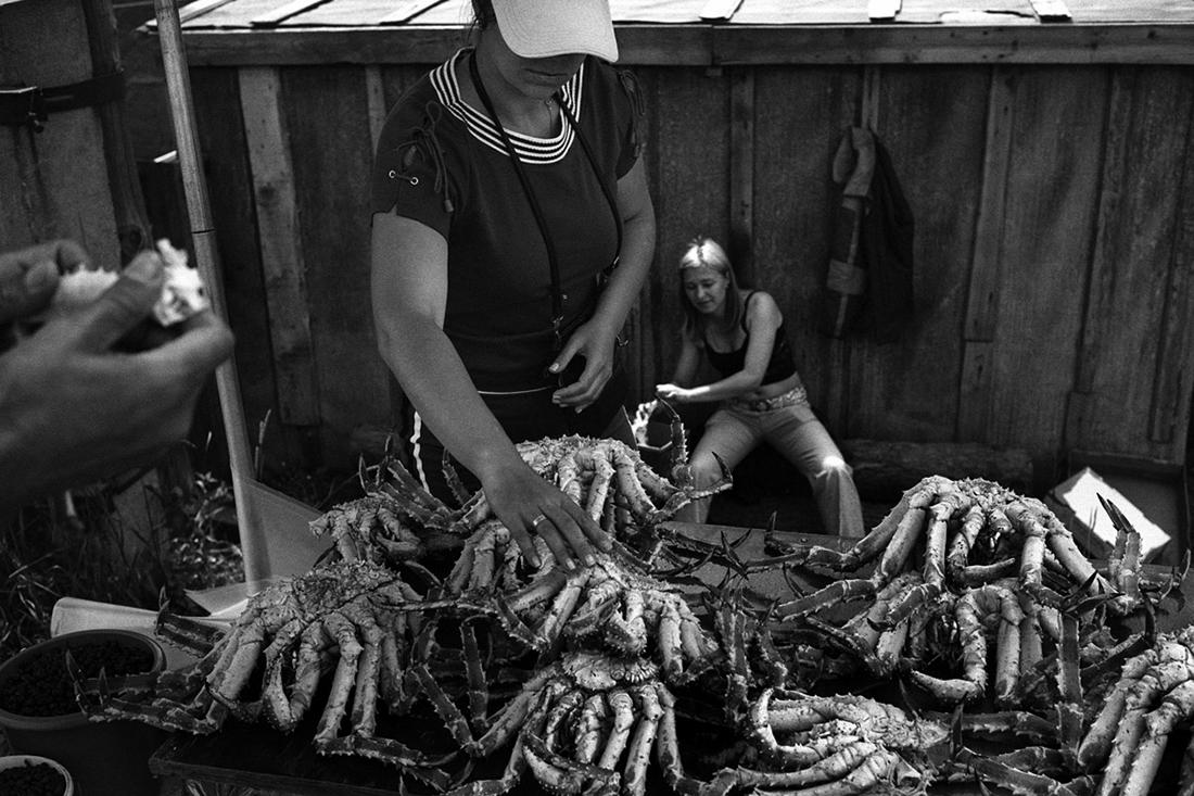 Сахалинская область — единственный регион континентальной России, который полностью расположен на 59 островах, большинство из них перешли под юрисдикцию СССР в сентябре 1945 года согласно решению Потсдамской конференции. Тогда с Сахалина и Курильских островов было репатриировано почти 300 тысяч японцев и более 8 тысяч японских военнопленных, а количество советских жителей увеличилось с 70 до 450 тысяч человек. Люди на острове живут бедно и живут рыбой — ее продают в Россию и Японию, продолжая тем самым бесконечный спор о принадлежности островов. Фотограф Олег Климов c апреля по июнь путешествовал по Сахалину и впервые в «Медузе» публикует историю про рыбный промысел региона.
