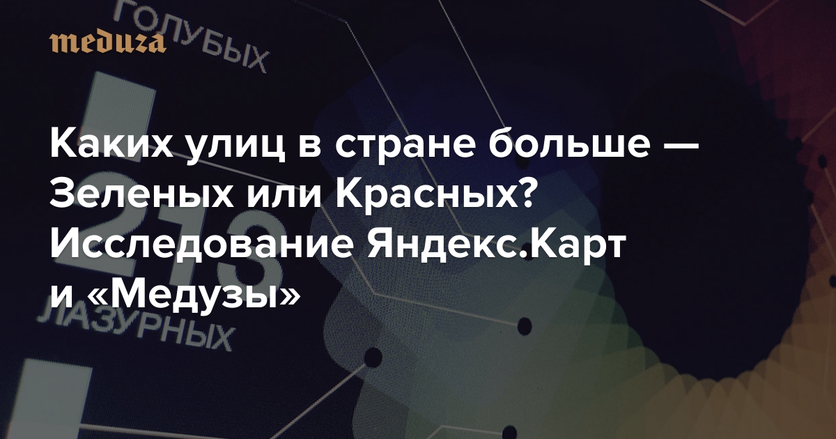 Разноцветная Россия Каких улиц в стране больше — Зеленых или Красных? Исследование Яндекс.Карт и «Медузы»