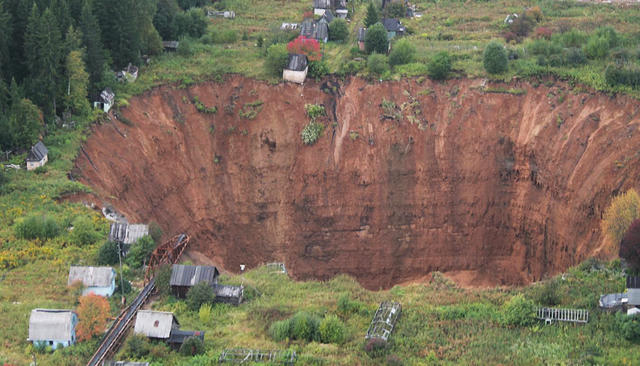 Провал в Соликамске Дыра из огромной превратилась в гигантскую. Фотогалерея