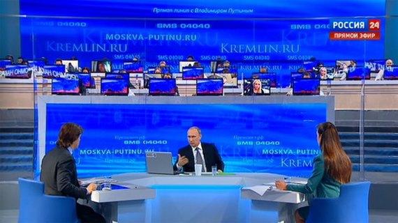 Почему-то первые минуты показывают не Путина, а операторов, которые говорят о том, что президенту наконец-то можно задать видеовопрос. XXI век!