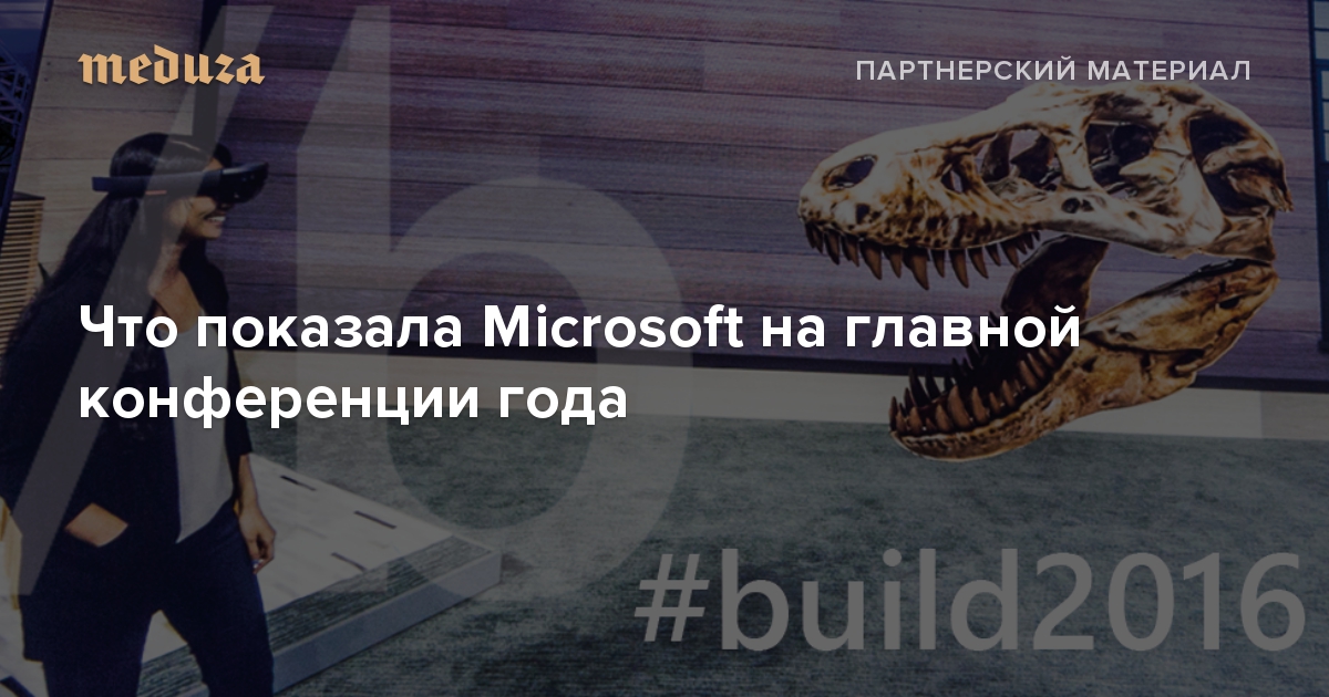 30 марта в Сан-Франциско началась конференция Microsoft Build 2016. Сама конференция предназначена для разработчиков, но в самом ее начале состоялась презентация, интересная и обычным пользователям. Посмотреть видеотрансляцию на русском языке можно было здесь. «Медуза» вела партнерский текстовый онлайн презентации.