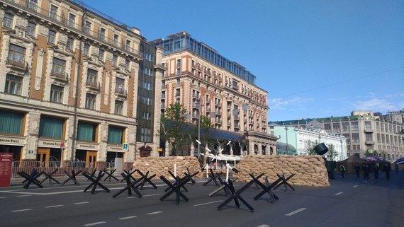 В Москве к митингам пока только готовятся, зато сразу с противотанковыми заграждениями (это угол Тверской и Моховой)!