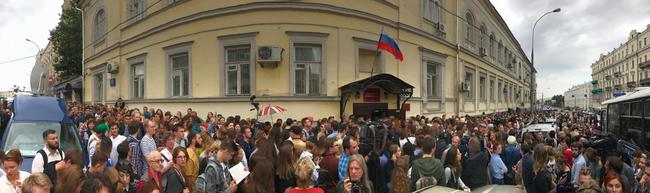 «ОВД-Инфо» сообщает, что у здания суда задержаны двое волонтеров штаба Алексея Навального.