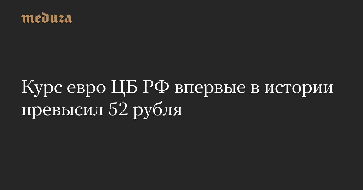 Курс евро ЦБ РФ впервые в истории превысил 52 рубля