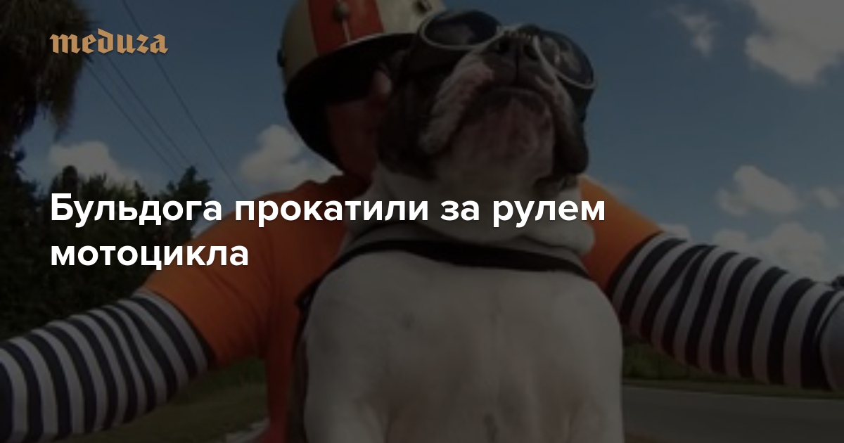 Английский бульдог прокатился за рулем мотоцикла в защитных очках. Про пса и его хозяина ничего не известно, но ведет себя бульдог как настоящий байкер, приветствуя проезжающих мимо «коллег».