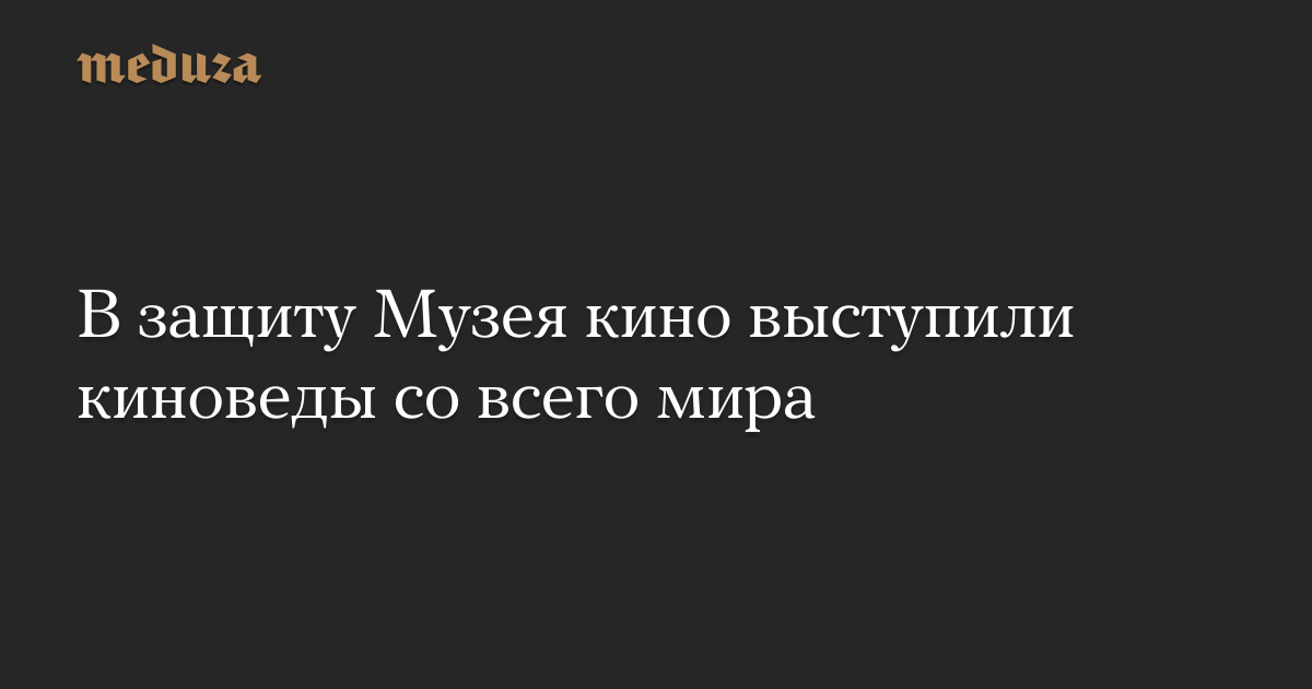 Более 180 киноведов и теоретиков кино со всего мира подписались под открытым письмом в защиту Музея кино. Письмо адресовано президенту России Владимиру Путину, премьер-министру Дмитрию Медведеву и министру культуры РФ Владимиру Мединскому.