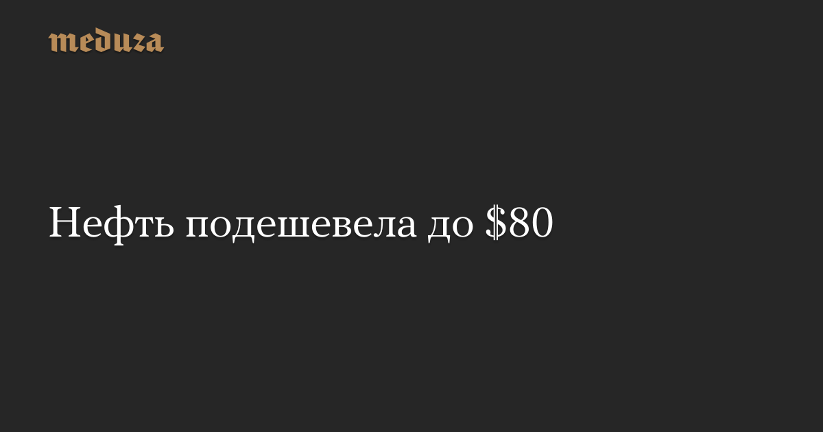 Нефть марки Brent на торгах на лондонской бирже подешевела до новых минимальных значений. Цена опустилась примерно до $80. Снижение котировок связывают с позицией Организации стран-экспортеров нефти (ОПЕК), которая сообщила, что не собирается резко сокращать объемы добычи.