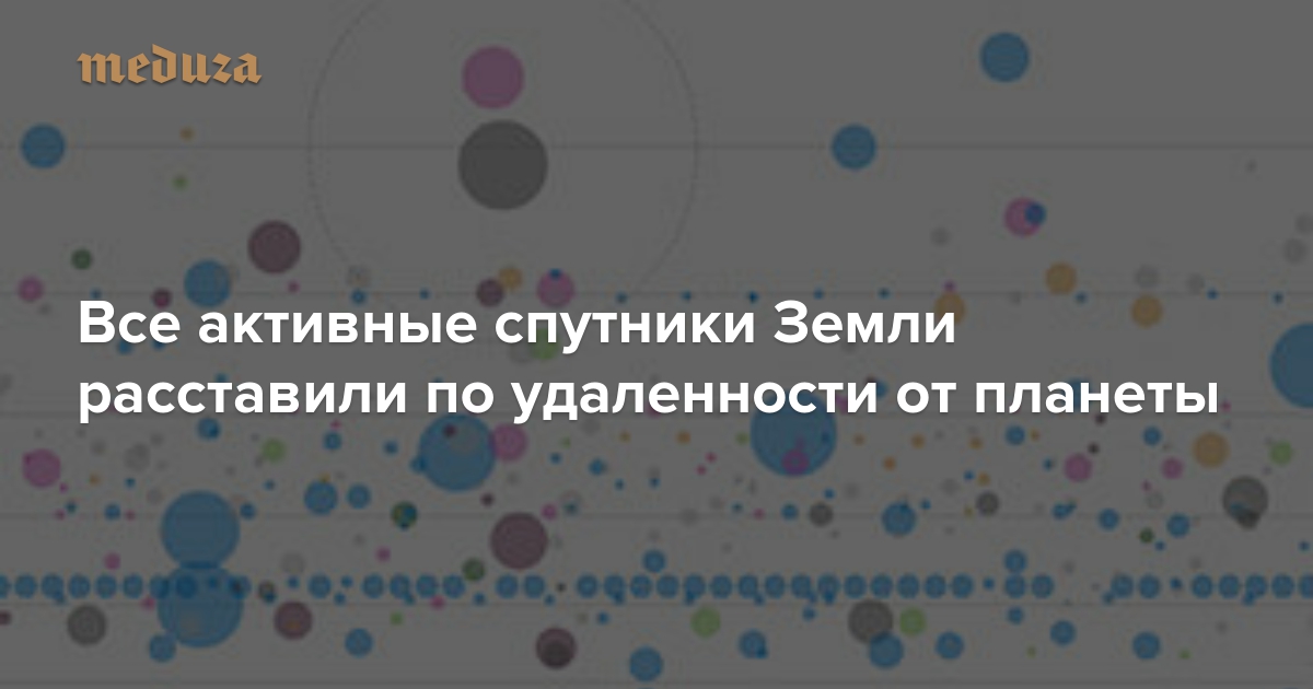 Издание Quartz подготовило инфографику об искусственных спутниках Земли — они расставлены на странице исходя из удаленности от поверхности планеты. Чем ниже пользователь проматывает страницу, тем более высокоорбитальные спутники он видит.