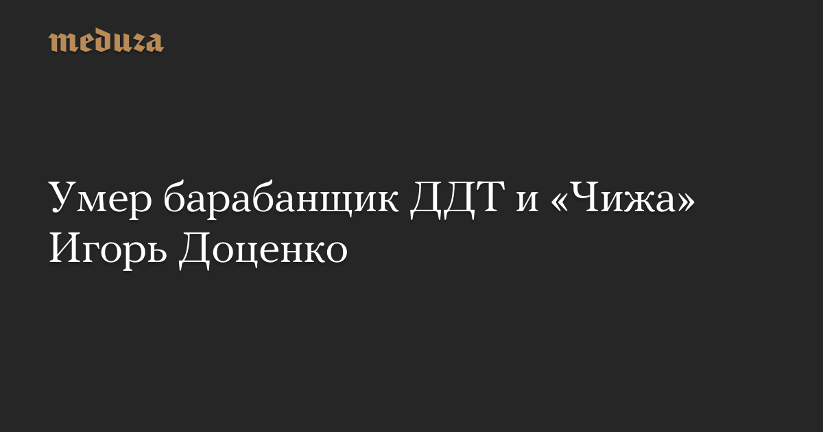 7 декабря скончался барабанщик Игорь Доценко, выступавший в составе ДДТ и «Чиж & Co». Об этом сообщил петербургский музыкант Алексей Вишня. Игорю Доценко был 61 год.