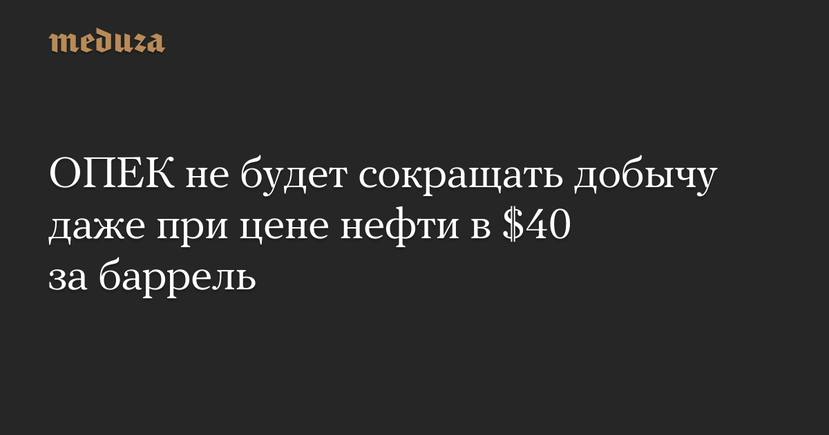 ОПЕК не будет сокращать добычу даже при цене нефти в $40 за баррель