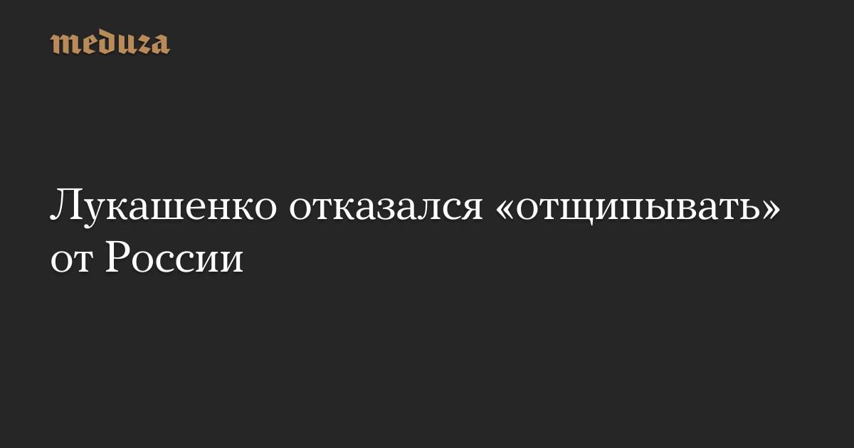 Президент Белоруссии Александр Лукашенко заявил, что его страна не станет ничего «отщипывать» от России «в сложные времена».