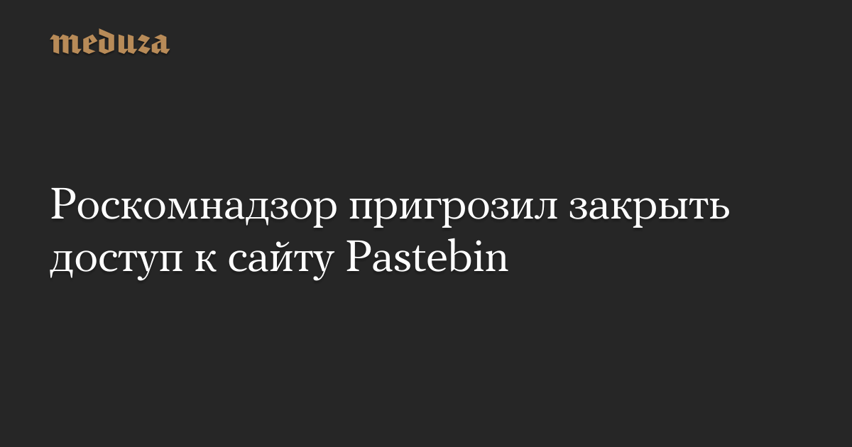 Обновление: Официальный представитель Роскомнадзора Вадим Ампелонский сообщил «Медузе», что сообщение о возможной блокировке Pastebin распространялось с поддельного аккаунта. «Медуза» приносит извинения своим читателям.