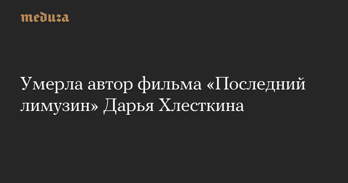 Умерла автор фильма «Последний лимузин» Дарья Хлесткина