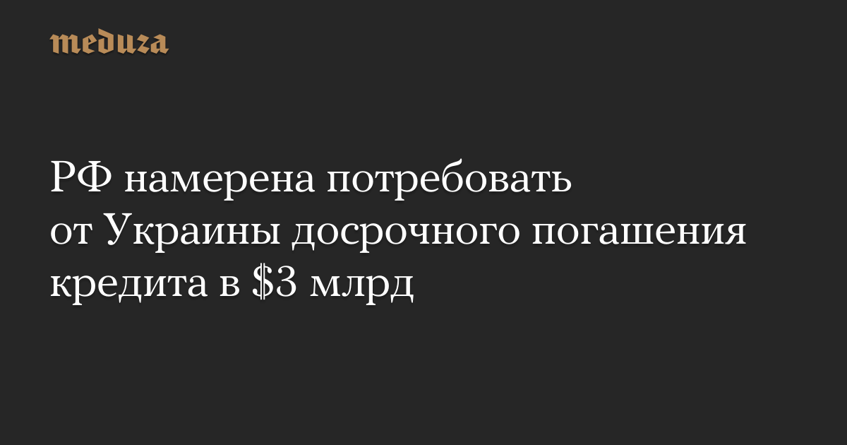 РФ намерена потребовать от Украины досрочного погашения кредита в $3 млрд