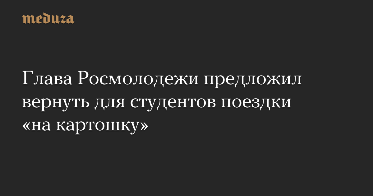 Глава Росмолодежи Сергей Поспелов предложил возродить практику отправки студентов на полевые работы (в обиходе — «на картошку). По его словам, это помогло бы наладить импортозамещение в России.
