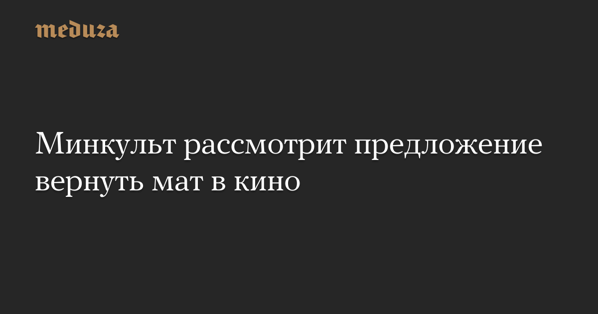 Министерство культуры обещало подумать о возможности возвращения матерной лексики в фильмы, предназначенные для просмотра людей старше 18 лет. В ведомстве заявили, что предложение кинематографистов внести поправки в закон, ограничивающий прокат российских картин с нецензурной бранью, находится на рассмотрении.