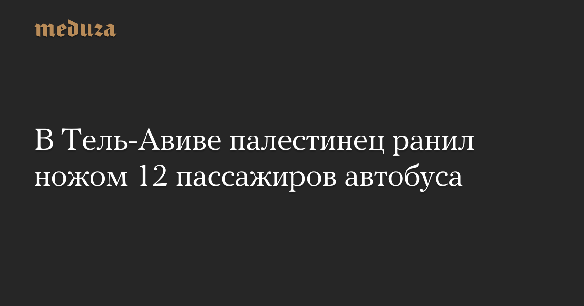 В Тель-Авиве мужчина напал с ножом на пассажиров автобуса. Всего в результате нападения пострадали 12 человек, четверо из них госпитализированы в тяжелом состоянии.
