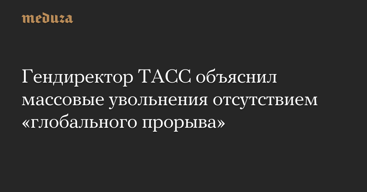 Гендиректор ТАСС объяснил массовые увольнения отсутствием «глобального прорыва»