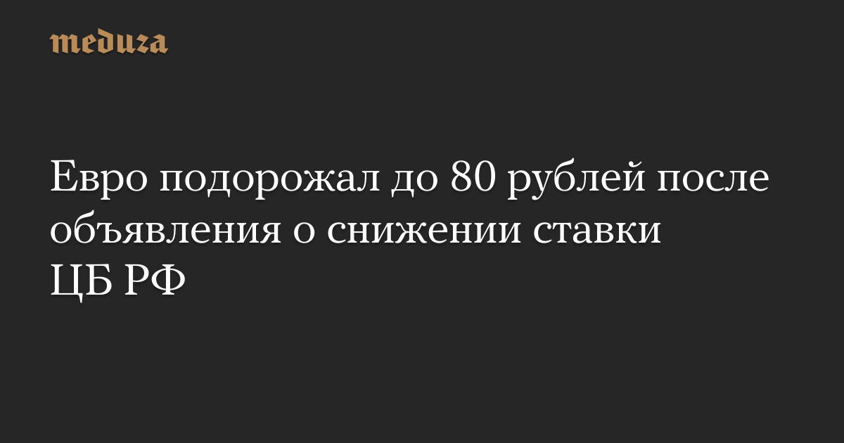 Евро подорожал до 80 рублей после объявления о снижении ставки ЦБ РФ