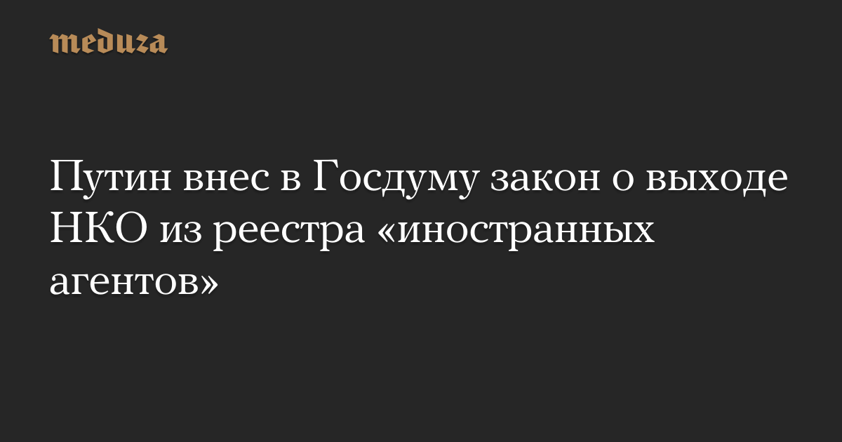 Путин внес в Госдуму закон о выходе НКО из реестра «иностранных агентов»