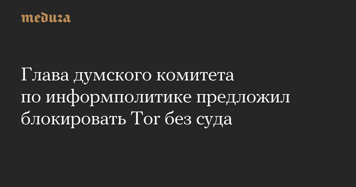 Глава думского комитета по информполитике предложил блокировать Tor без суда