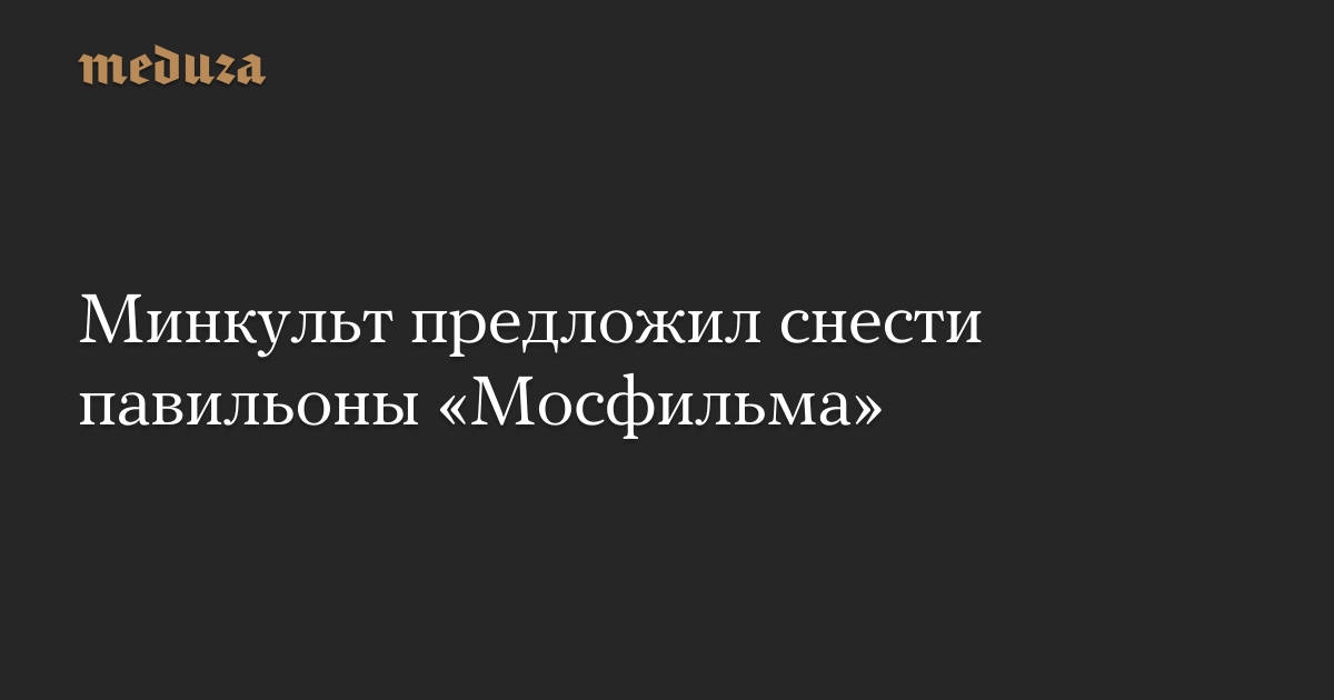 Министерство культуры направило правительству РФ предложение о сносе 31 строения на территории киностудии «Мосфильм» в рамках реализации инвестиционного проекта и строительства многофункционального культурного центра. Как следует из опубликованных на портале Regulation.gov материалов, правительство РФ предлагает поддержать предложение Минкульта.