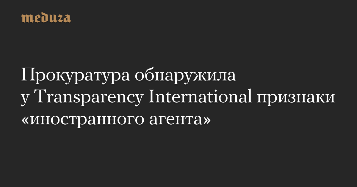 Прокуратура обнаружила у Transparency International признаки «иностранного агента»