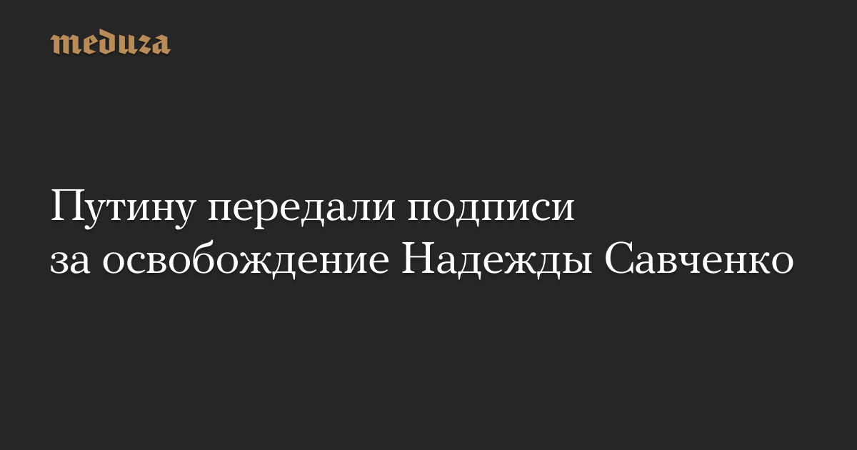 В приемную президента России Владимира Путина переданы подписи за изменение меры пресечения украинской военнослужащей Надежде Савченко, арестованной по обвинению в причастности к гибели журналистов ВГТРК в Донбассе. Всего переданы 11509 подписей — они были собраны и обработаны «Новой газетой» с 9 по 23 февраля.