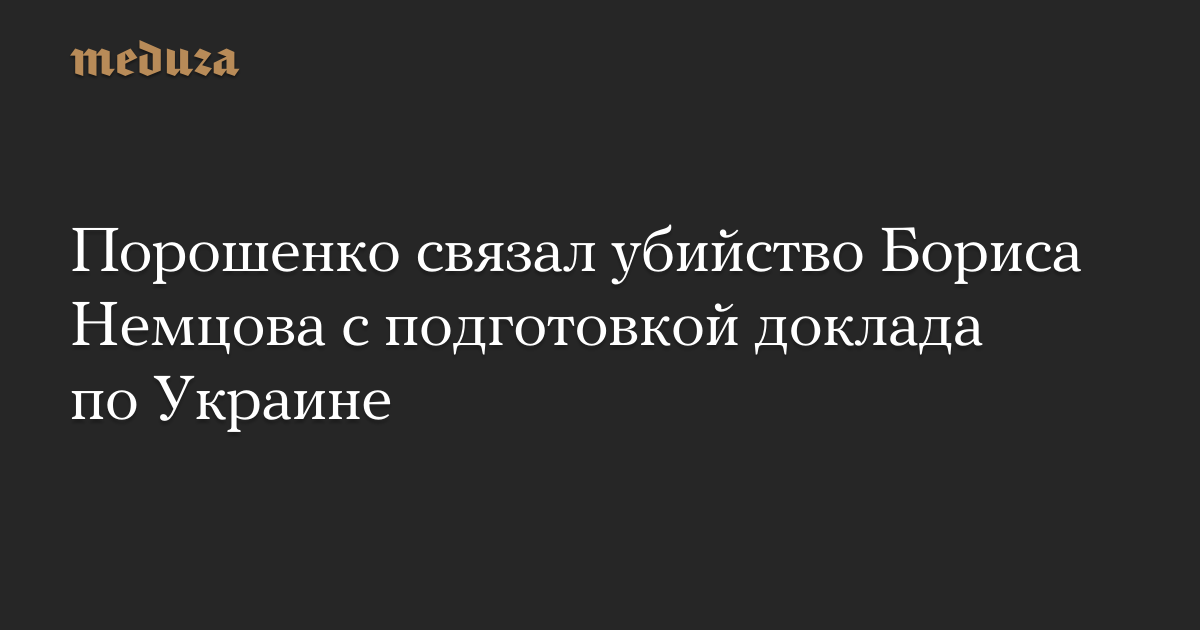 Президент Украины Петр Порошенко заявил, что убийство Бориса Немцова могло быть связано с тем, что он готовился обнародовать доклад об участии российских вооруженных сил в конфликте в Донбассе.