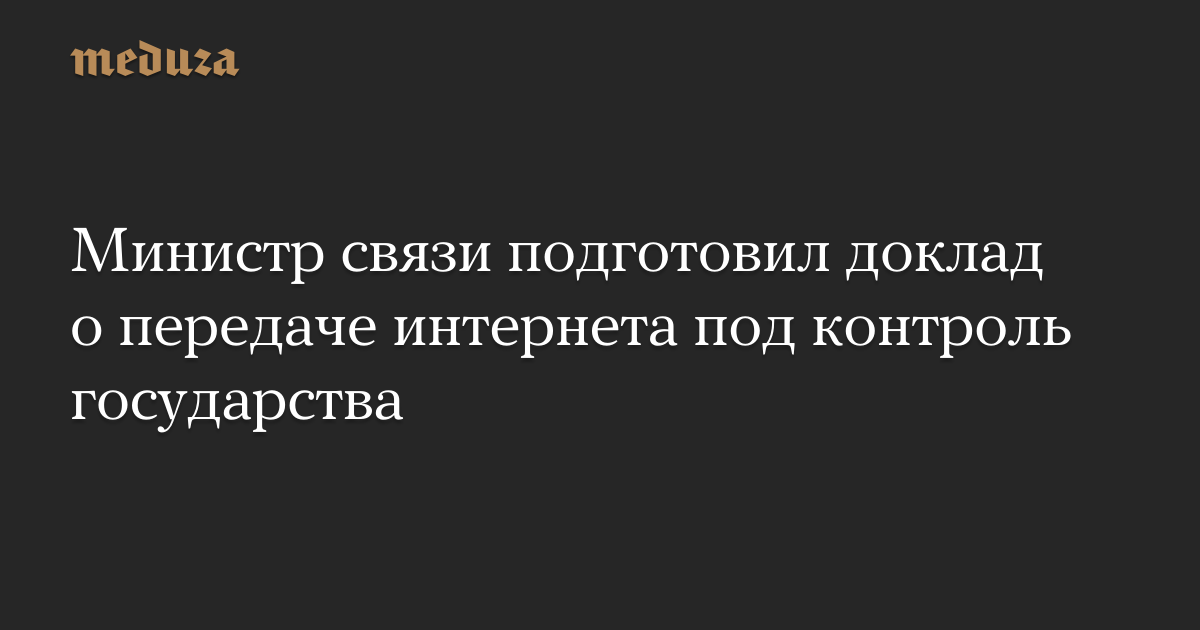 Министр связи подготовил доклад о передаче интернета под контроль государства