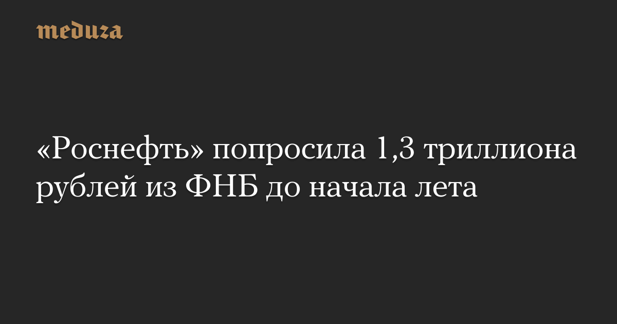 «Роснефть» попросила 1,3 триллиона рублей из ФНБ до начала лета