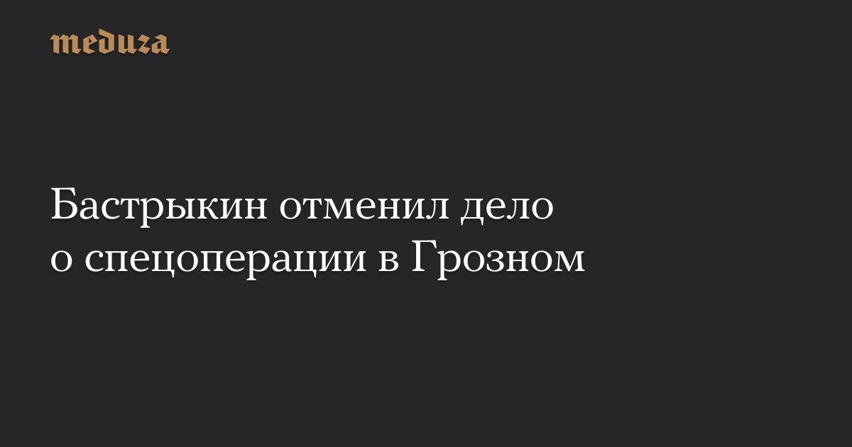 Председатель Следственного комитета РФ Александр Бастрыкин лично отменил постановление чеченского управления СК о возбуждении дела о спецоперации в Грозном. Об этом говорится в пресс-релизе на сайте ведомства. С чем связано решение Бастрыкина, не уточняется.