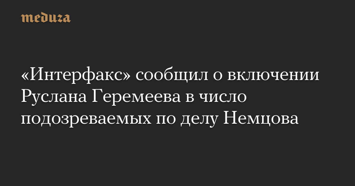 Агентство «Интерфакс» сообщило со ссылкой на осведомленный источник, что бывший офицер чеченского батальона «Север» Руслан Геремеев включен в число подозреваемых по делу об убийстве Бориса Немцова. Такой статус, как отметил источник, позволяет задержать Геремеева до предъявления обвинения. Официального подтверждения сообщение агентства не имеет.