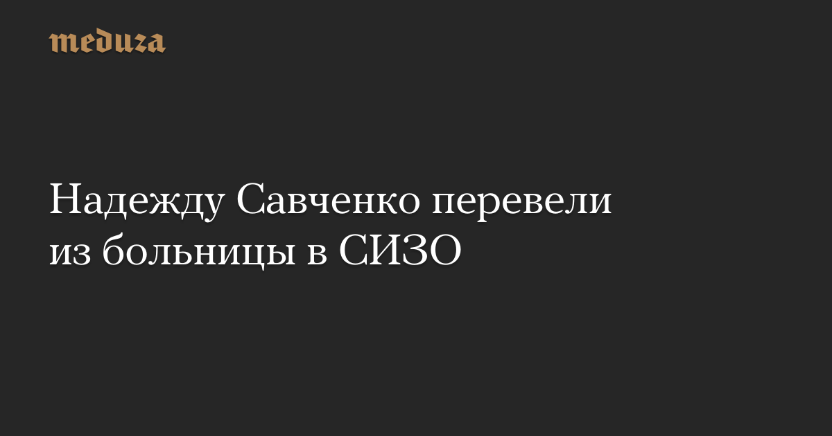 Украинскую военнослужащую Надежду Савченко, арестованную в России по обвинению в причастности к убийству журналистов ВГТРК в Донбассе, перевели из 20-й городской больницы Москвы обратно в СИЗО. Об этом сообщил главный врач больницы Андрей Крапивин.