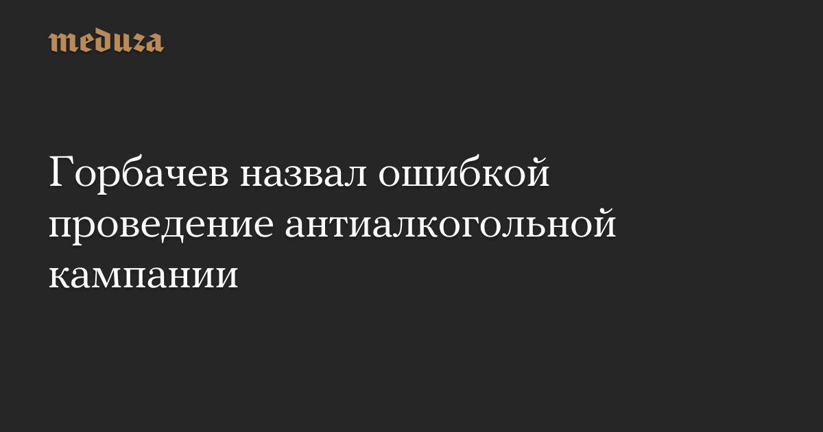 Антиалкогольная кампания, начатая в Советском Союзе 1985 году, была ошибочной, так как «проводилась слишком резко».