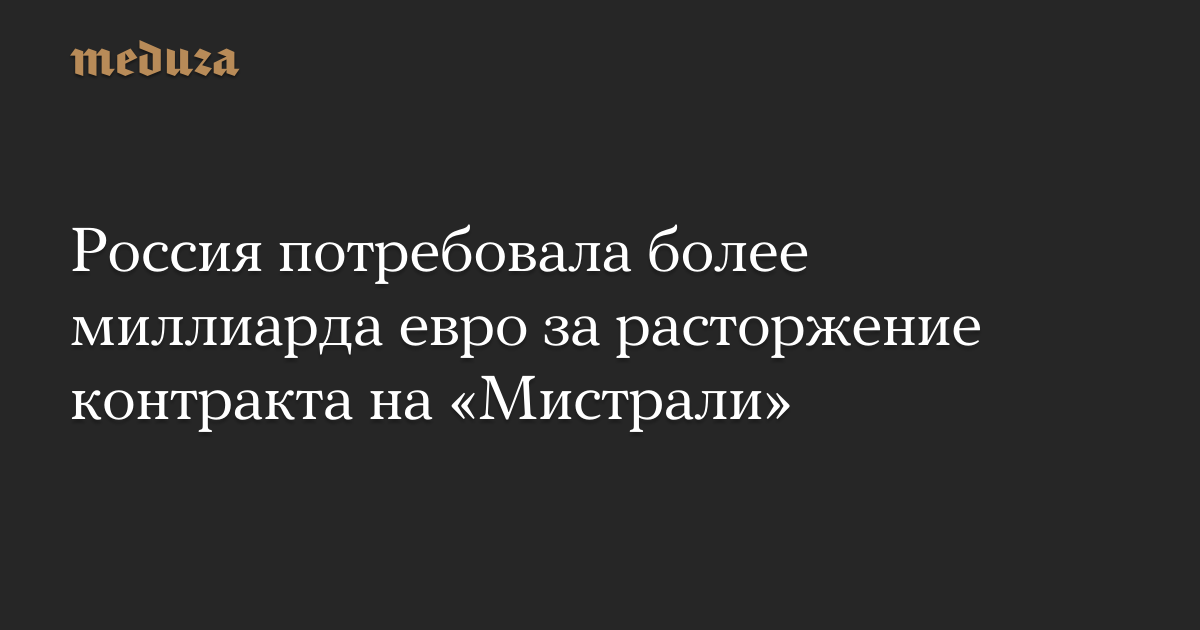 В Москве требуют 1,163 миллиарда евро компенсации в счет понесенных Россией расходов и убытков из-за расторжения контракта. Реэкспорт кораблей возможен только после того, как будет перечислена компенсация, настаивают в России.
