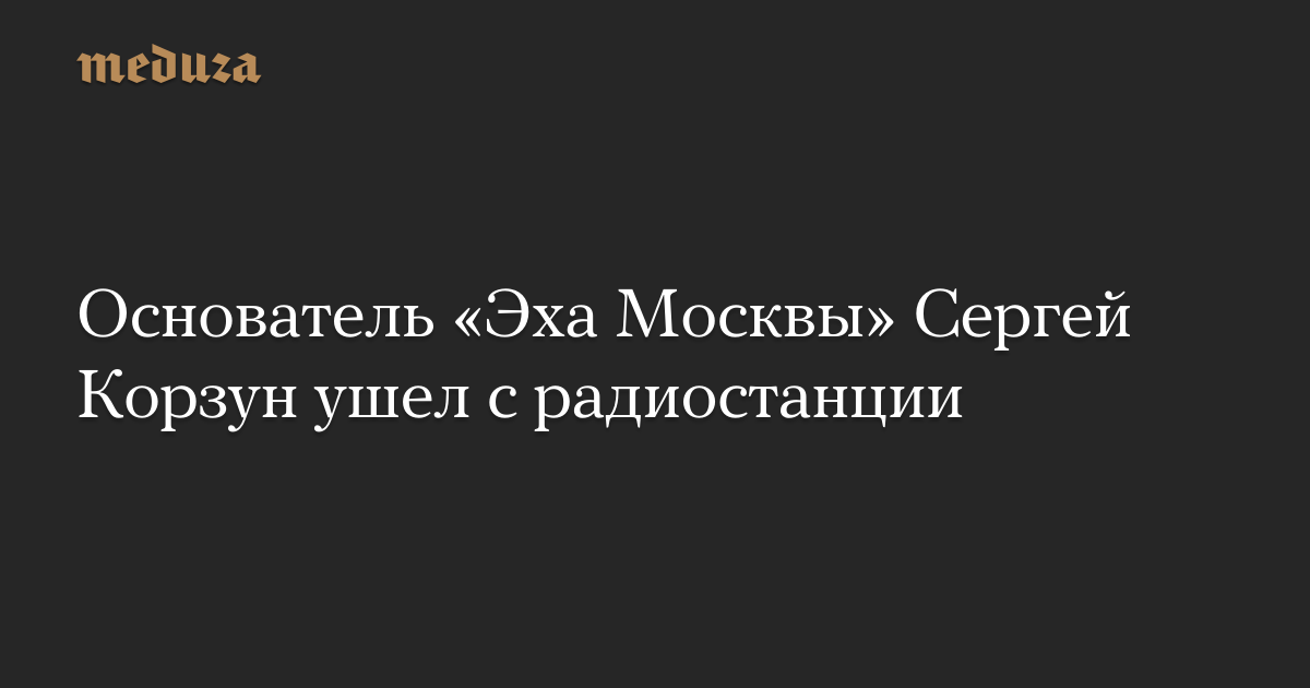 Основатель и первый главный редактор «Эха Москвы» Сергей Корзун объявил о своем уходе с радиостанции. Он обвинил руководство радио в предательстве своей аудитории и отказался «поддерживать новый курс капитана на поддержание рейтинга в ущерб базовым ценностям».