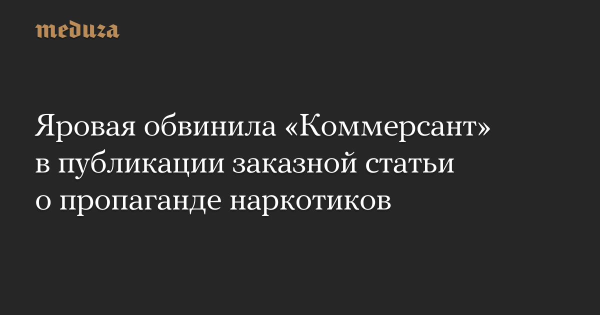 Яровая обвинила «Коммерсант» в публикации заказной статьи о пропаганде наркотиков