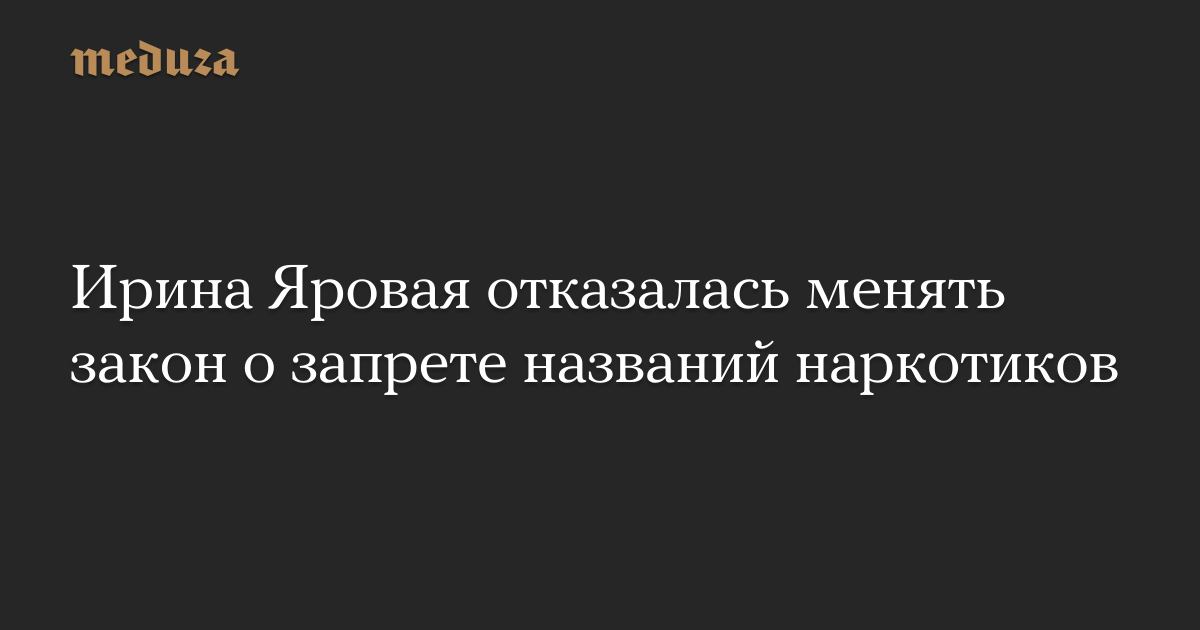 Депутат Госдумы Ирина Яровая отказалась изменить свой закон о запрете на изображения и названия наркотиков. Как следует из ее заявления на сайте «Единой России», в первом чтении Госдума приняла окончательную версию написанного ею документа.