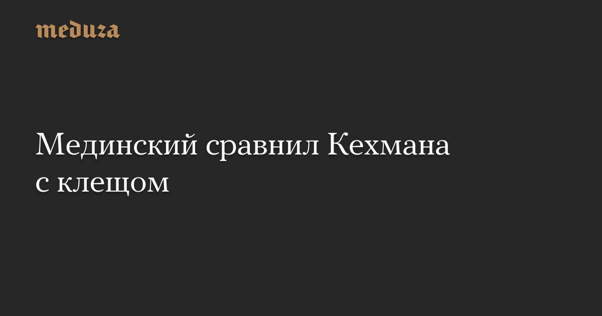 Поправка. Первоначально в заметке говорилось о том, что Владимир Мединский сравнил Владимира Кехмана с клопом. Помощница министра культуры указала «Медузе» на неточность этого сообщения — в действительности Мединский сравнил Кехмана с клещом. Издание «Фонтанка.ру», первоисточник сообщения, исправила текст своей заметки. Редакция «Медузы» приносит читателям извинения за допущенную ошибку.