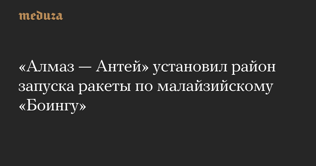 «Алмаз — Антей» установил район запуска ракеты по малайзийскому «Боингу»