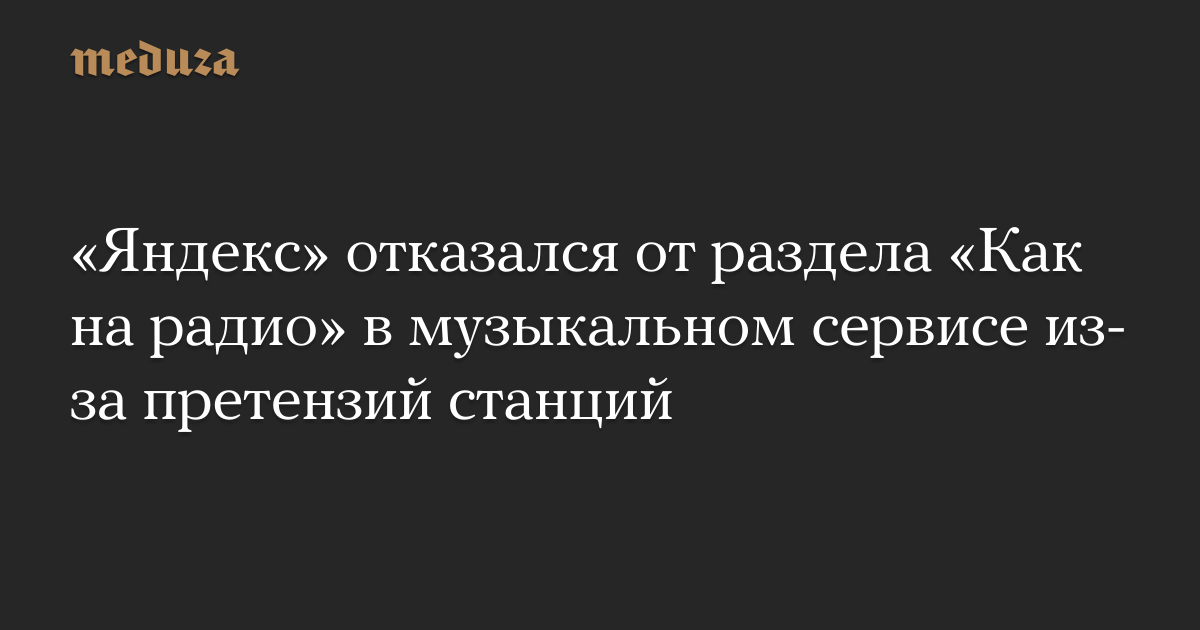 «Яндекс» отказался от раздела «Как на радио» в музыкальном сервисе из-за претензий станций