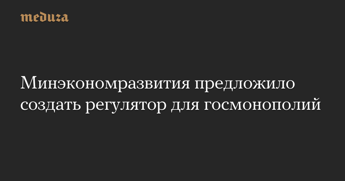 Министерство экономического развития предложило создать единого регулятора для государственных монополий. Об этом говорится в письме замглавы Минэкономразвития Николая Подгузова первому вице-премьеру Игорю Шувалову, пишет газета «Ведомости».