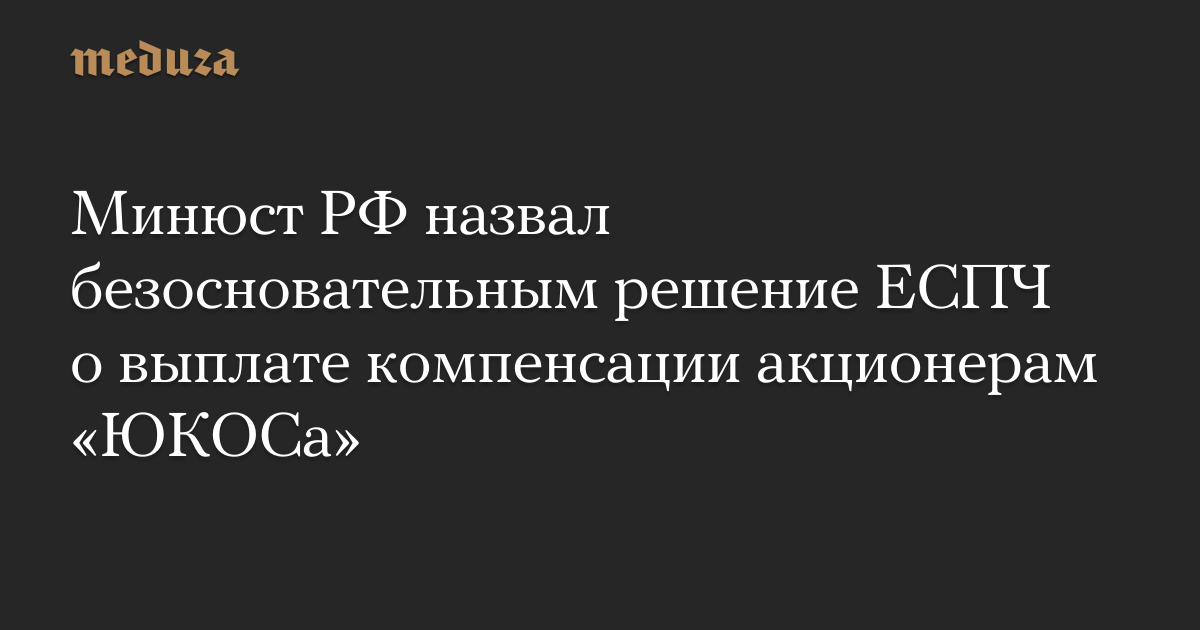 Минюст РФ назвал безосновательным решение ЕСПЧ о выплате компенсации акционерам «ЮКОСа»