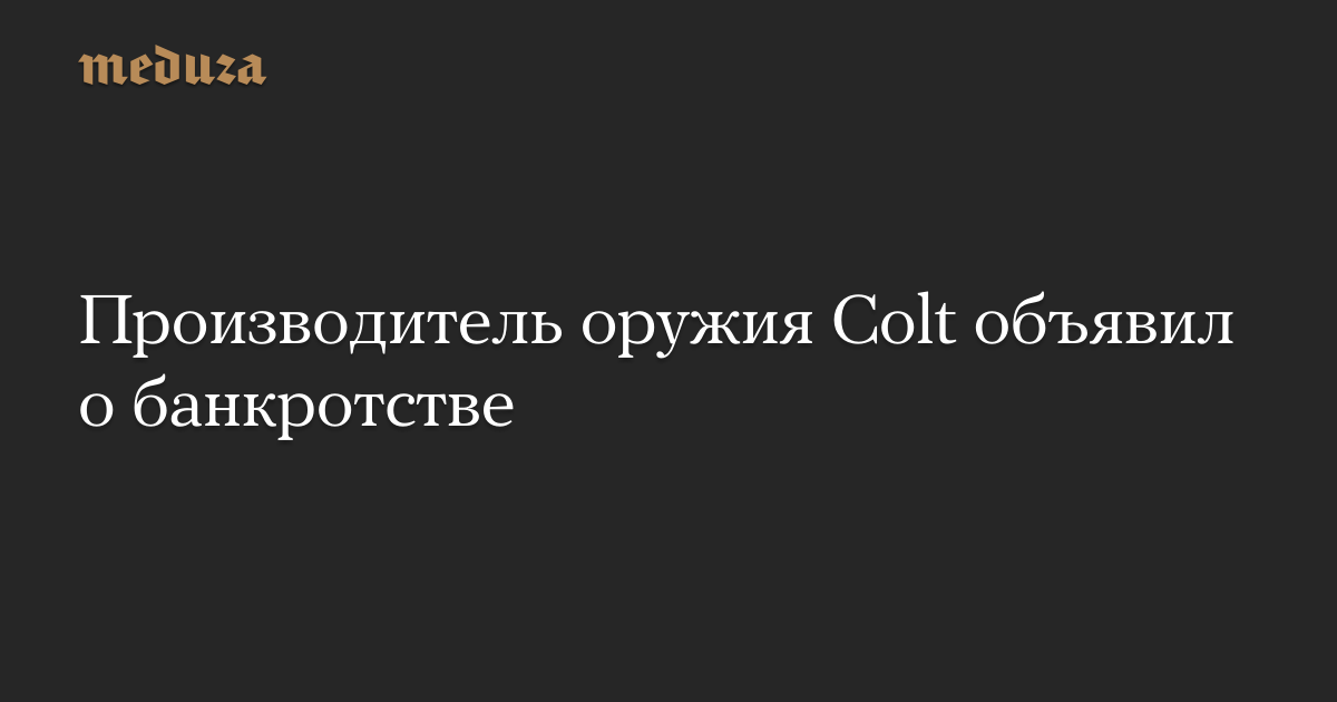 Компания Colt Defense LLC, занимающаяся производством оружия, подала в суд заявление о банкротстве, сообщает агентство Bloomberg.