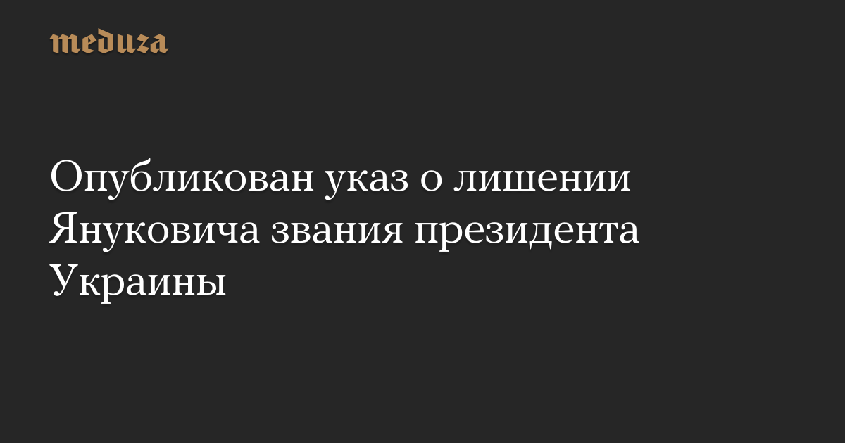 Украинская парламентская газета «Голос Украины» опубликовала указ о лишении Виктора Януковича, отстраненного от власти в феврале 2014 года, звания президента Украины. Указ опубликован 17 июня, он вступит в силу на следующий день после публикации.