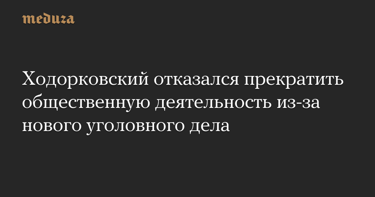 Ходорковский отказался прекратить общественную деятельность из-за нового уголовного дела