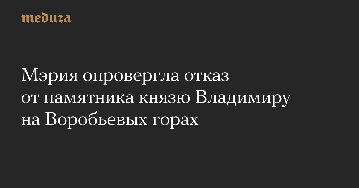 Власти Москвы не принимали решения об отказе от установки памятника князю Владимиру на Воробьевых горах. Об этом заявила пресс-секретарь мэра Гульнара Пенькова.