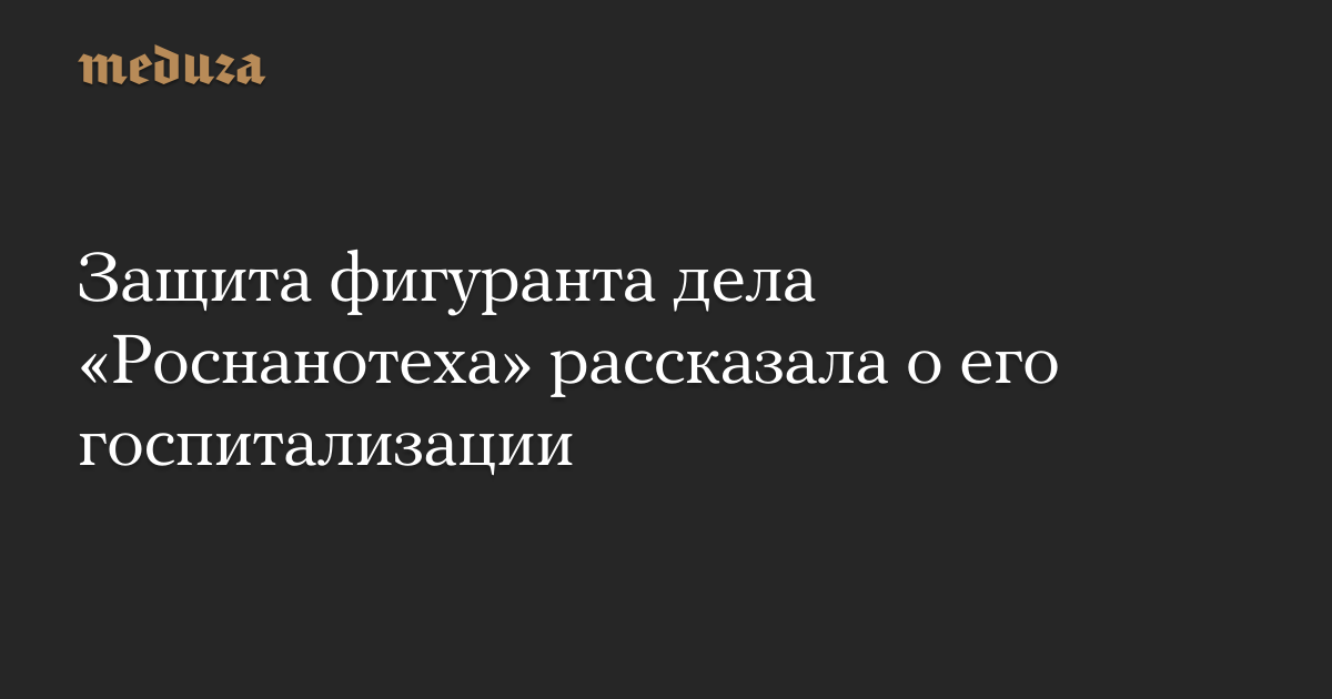 Защита фигуранта дела «Роснанотеха» рассказала о его госпитализации